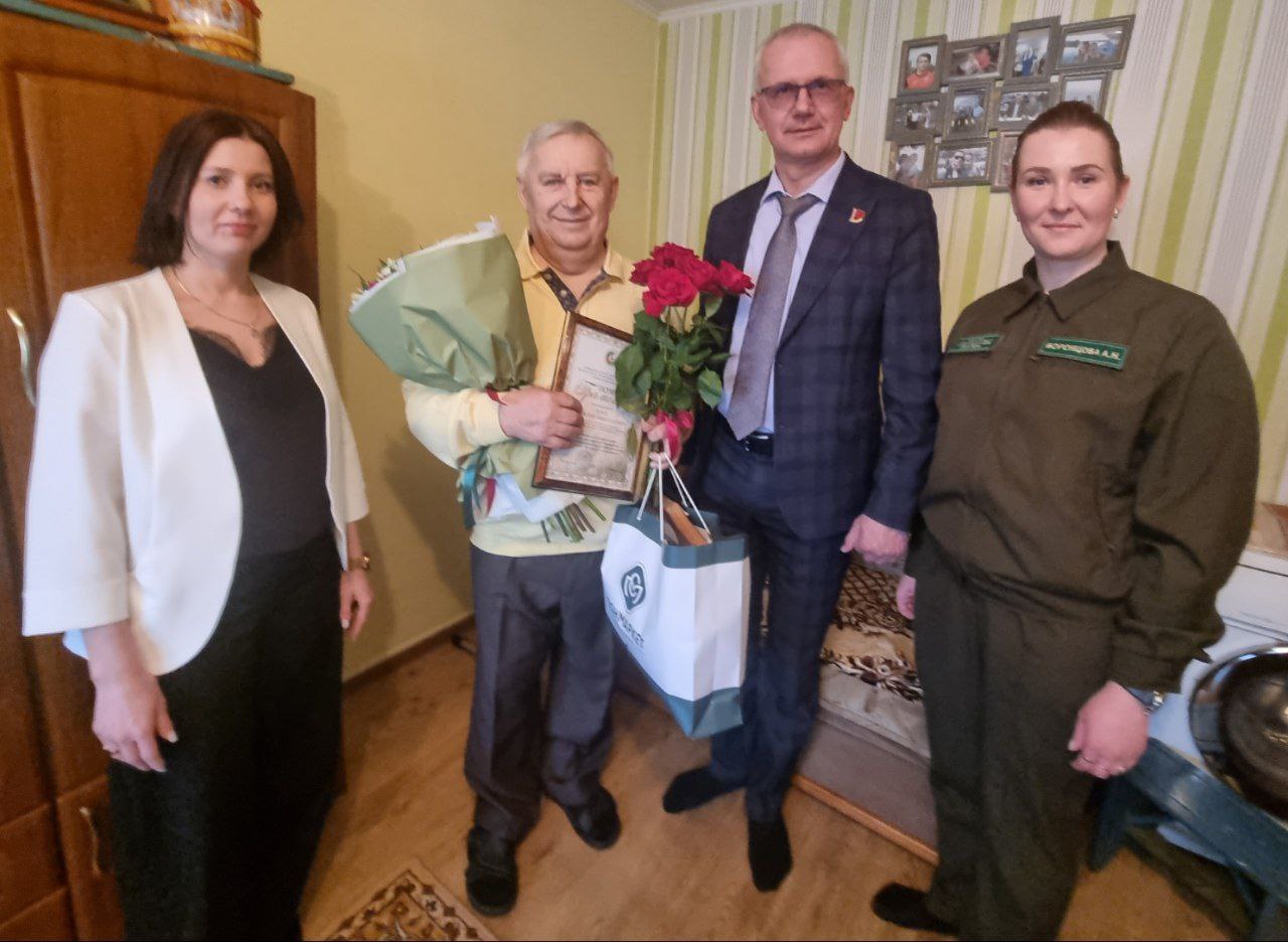 Ему исполнилось 70 лет! В этот знаменательный день разделить радость события с юбиляром приехали почетные гости: председатель областной организации профсоюза Александр Василенко, заместитель по идеологической работе Ельского лесхоза Анна Воронцова и председатель первичной профсоюзной организации Ельского лесхоза Оксана Кирсанова.