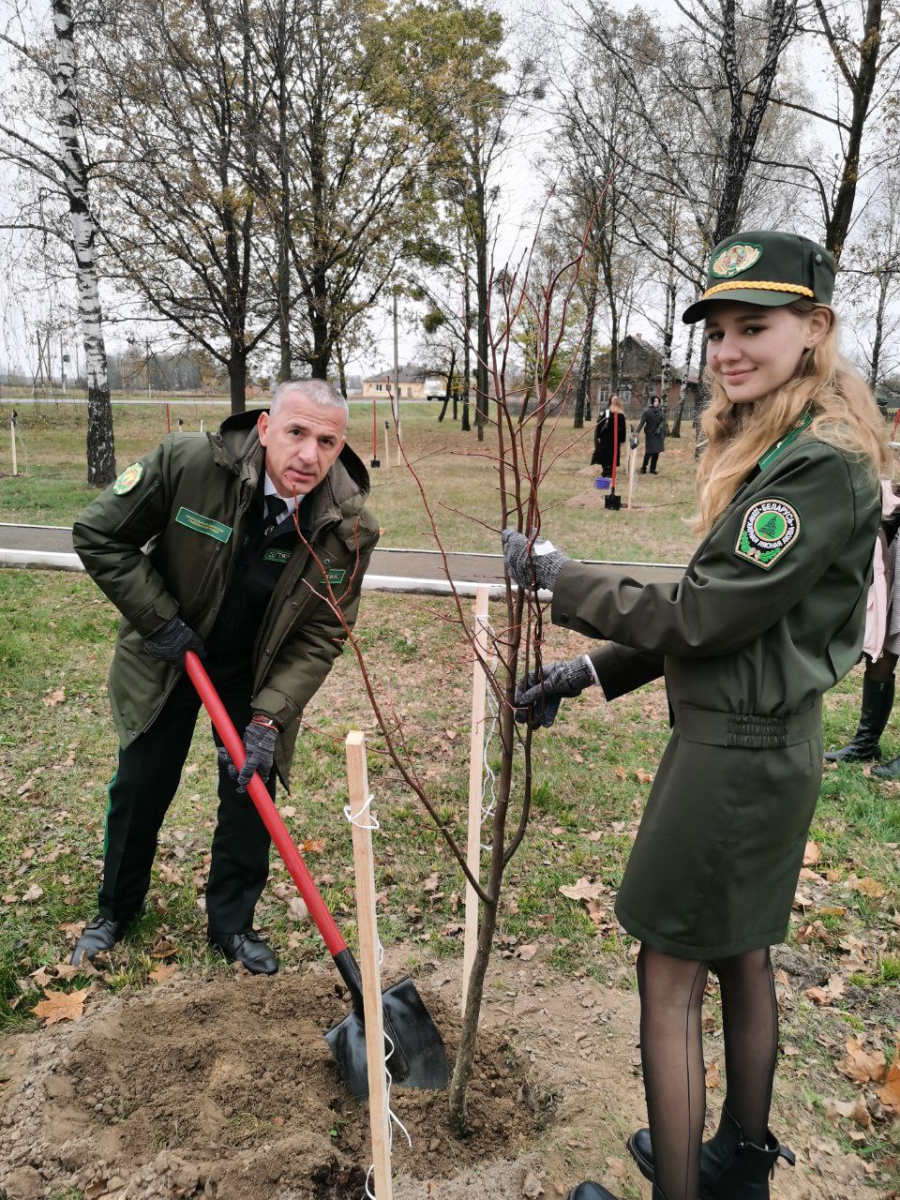 В течении дня ребята вместе с руководством Гомельского ГПЛХО, районного исполнительного комитета и Гомельской областной организации Белорусского профсоюза работников леса и природопользования посещали структурные подразделения Ельского лесхоза: погрузочно-разгрузочный пункт и Кочищанское лесничество, почтили память минутой молчания героев Великой Отечественной войны и возложили цветы к мемориалу, заложили памятную аллею.
