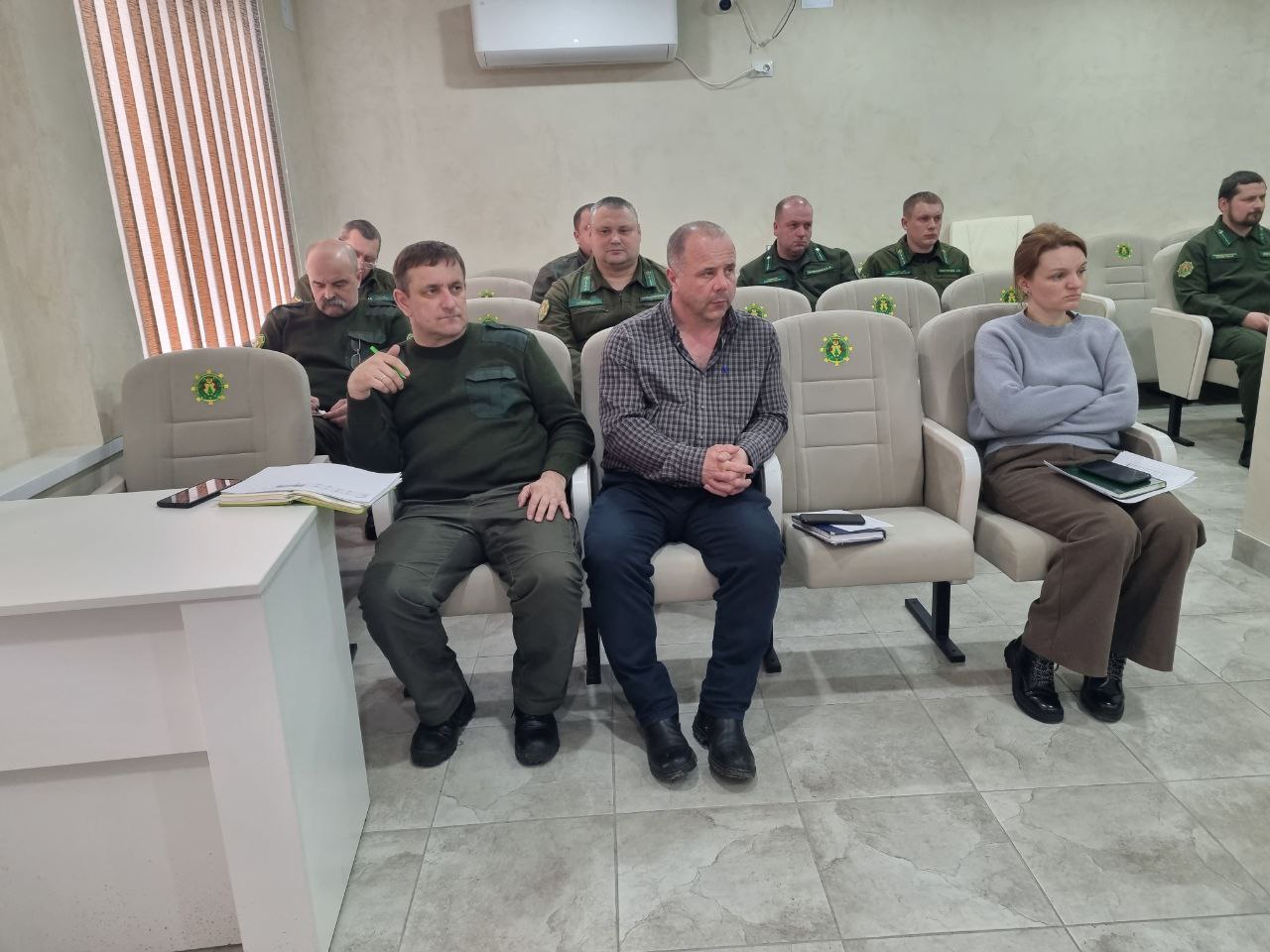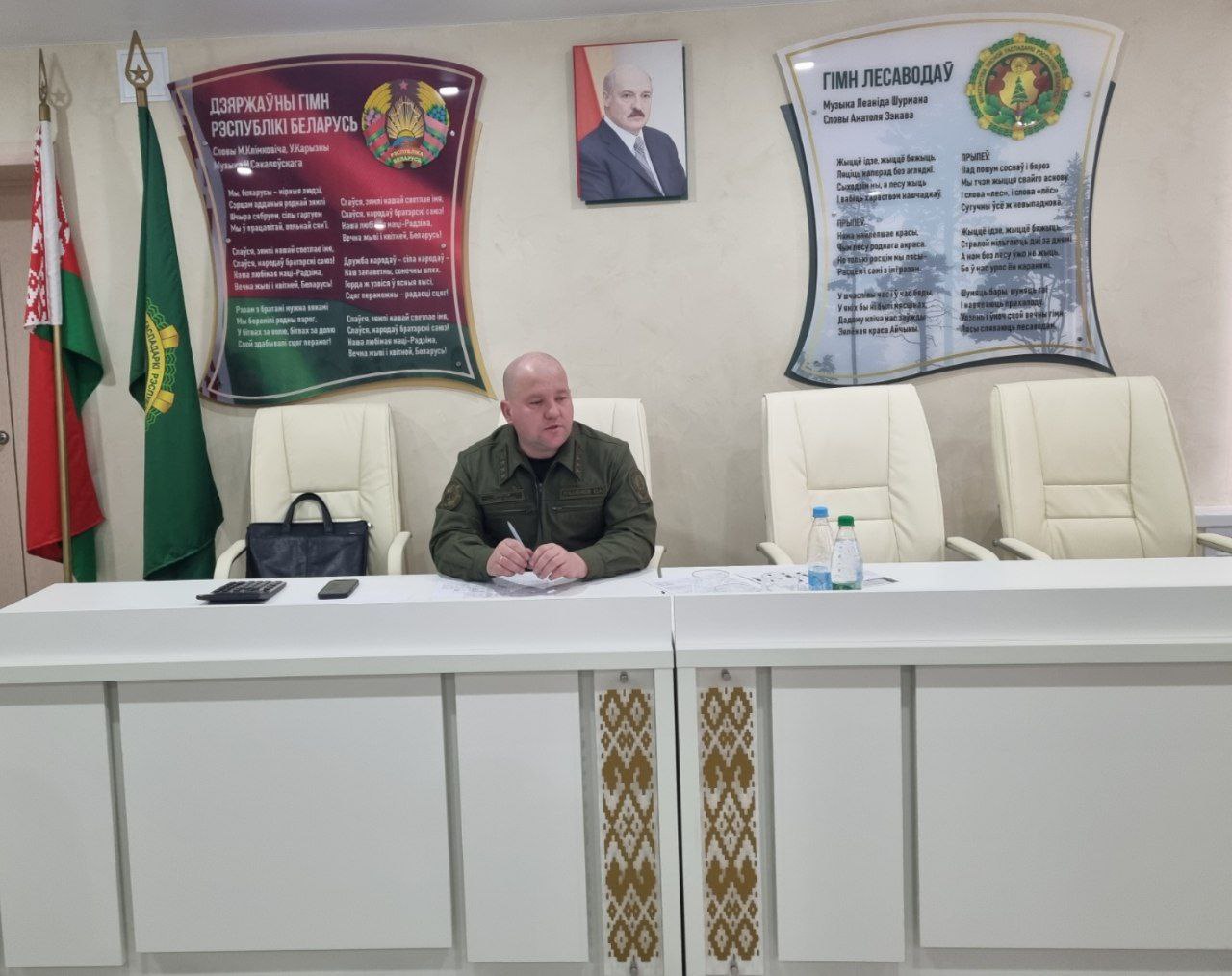 В Ельском лесхозе проходит производственное совещание. Директор Юрий Андреевич Луканенков проводит планерку в актовом зале.
