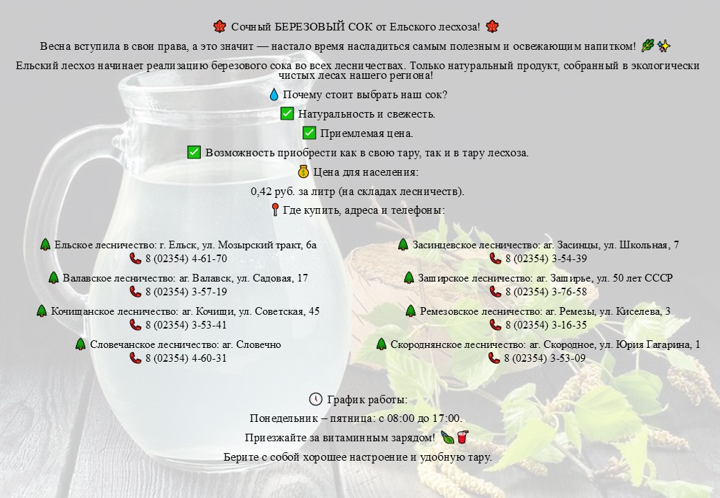 Сочный БЕРЕЗОВЫЙ СОК от Ельского лесхоза!