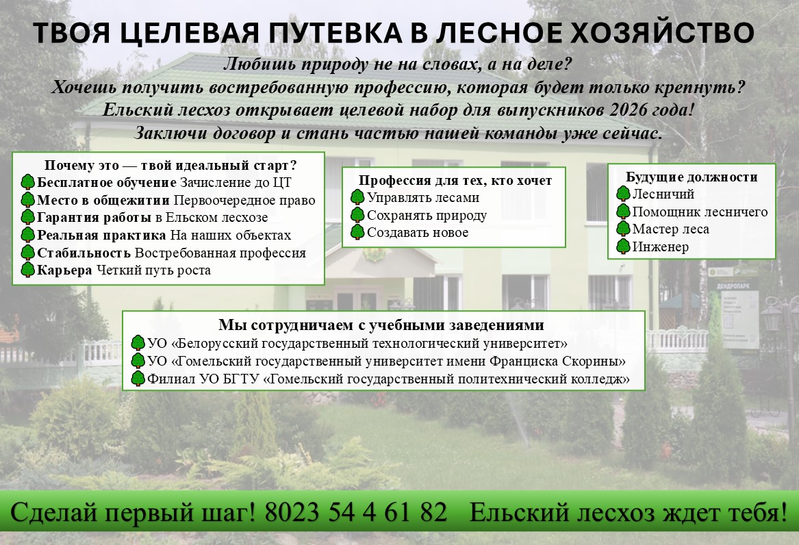Ельский лесхоз приглашает выпускников 2026 года заключить договор на целевую подготовку и стать нашим будущим!